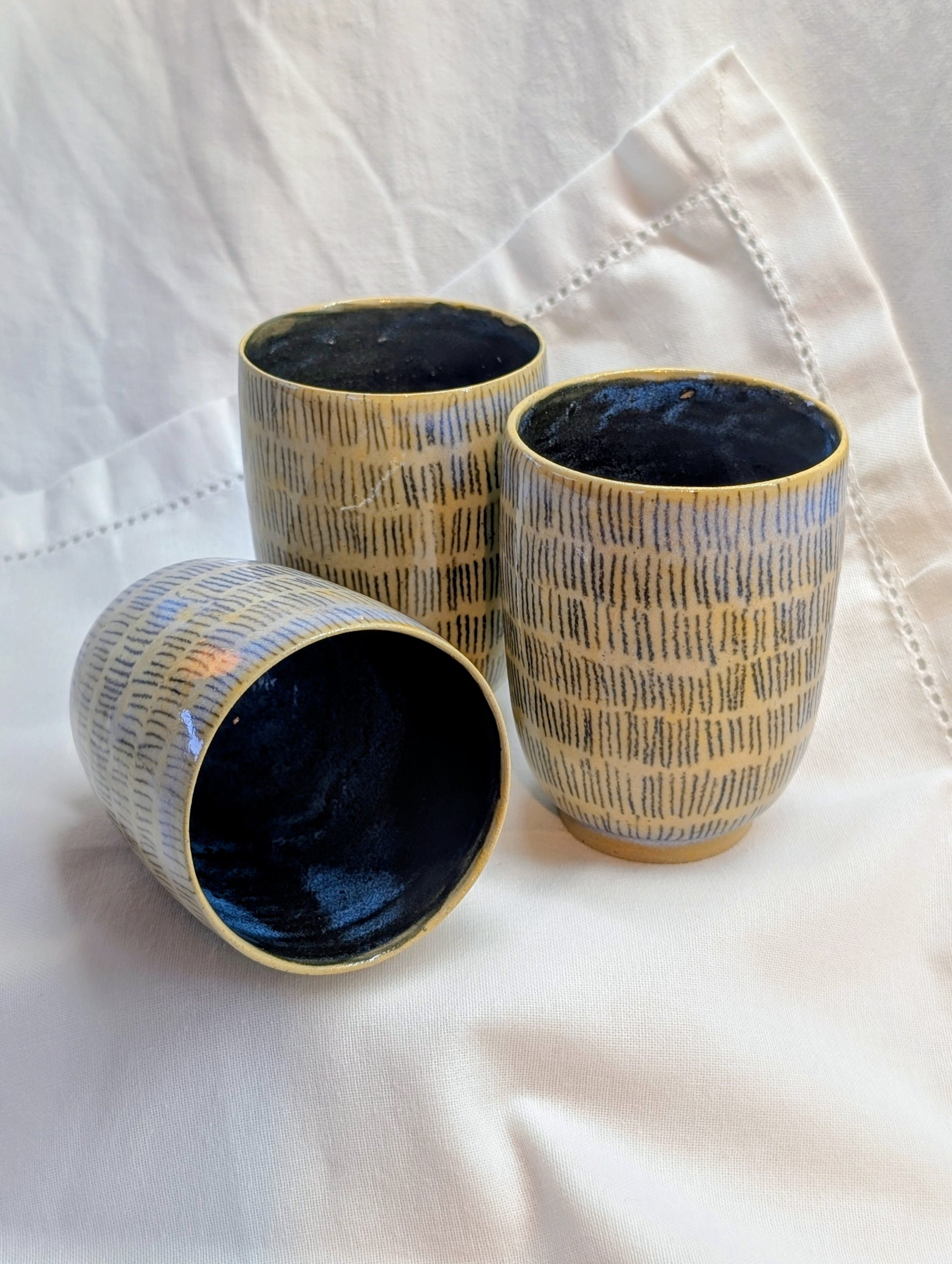 Ø max 7cm / h. 10cm / 0.25 litres. Environ, car ces tasses sont faites à la main, du coup elles sont toutes un peu différentes les unes des autres, donc toutes uniques.