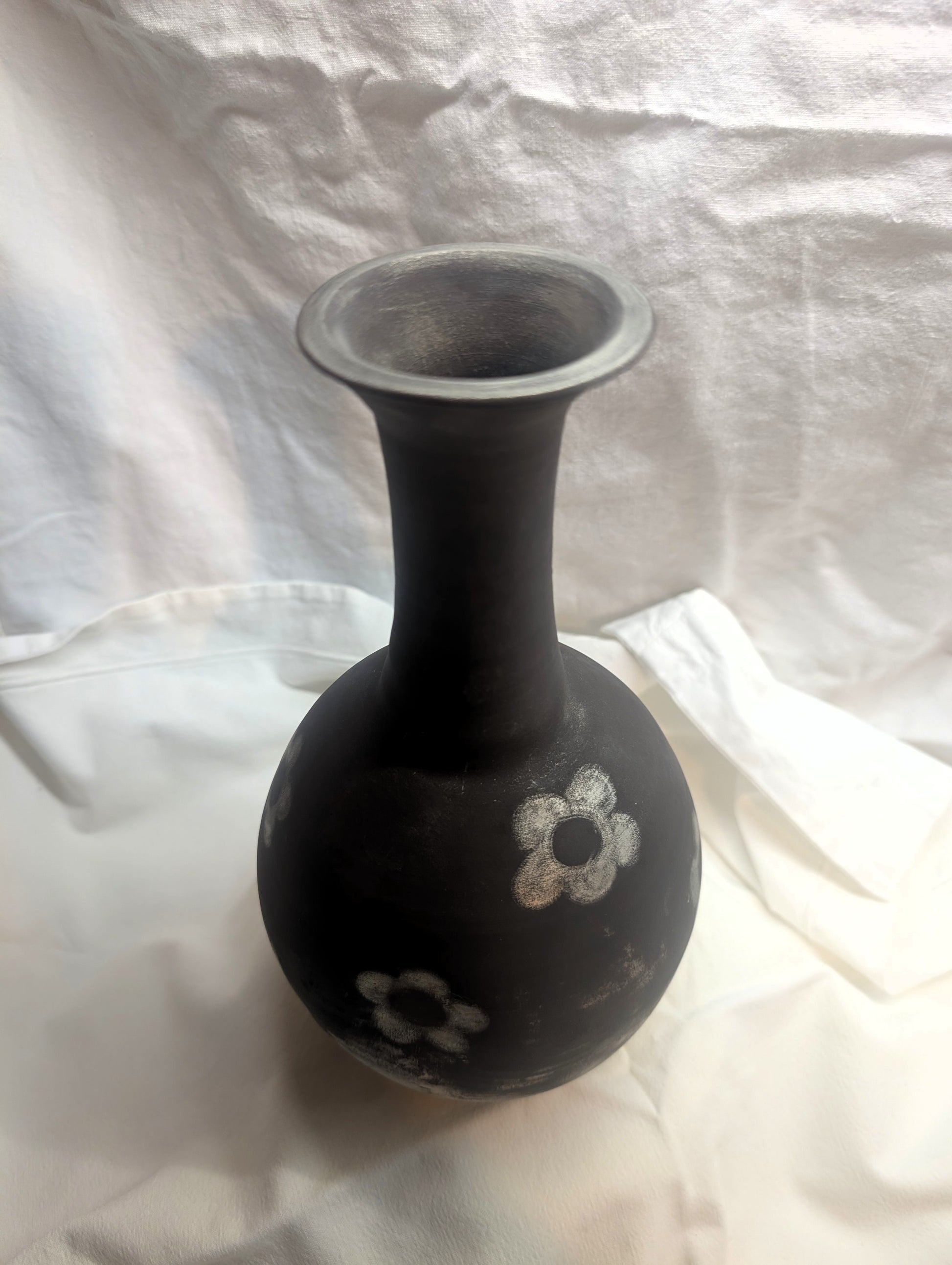 Vase turned in Saint Amand stoneware, slip decoration and shiny transparent enamel.