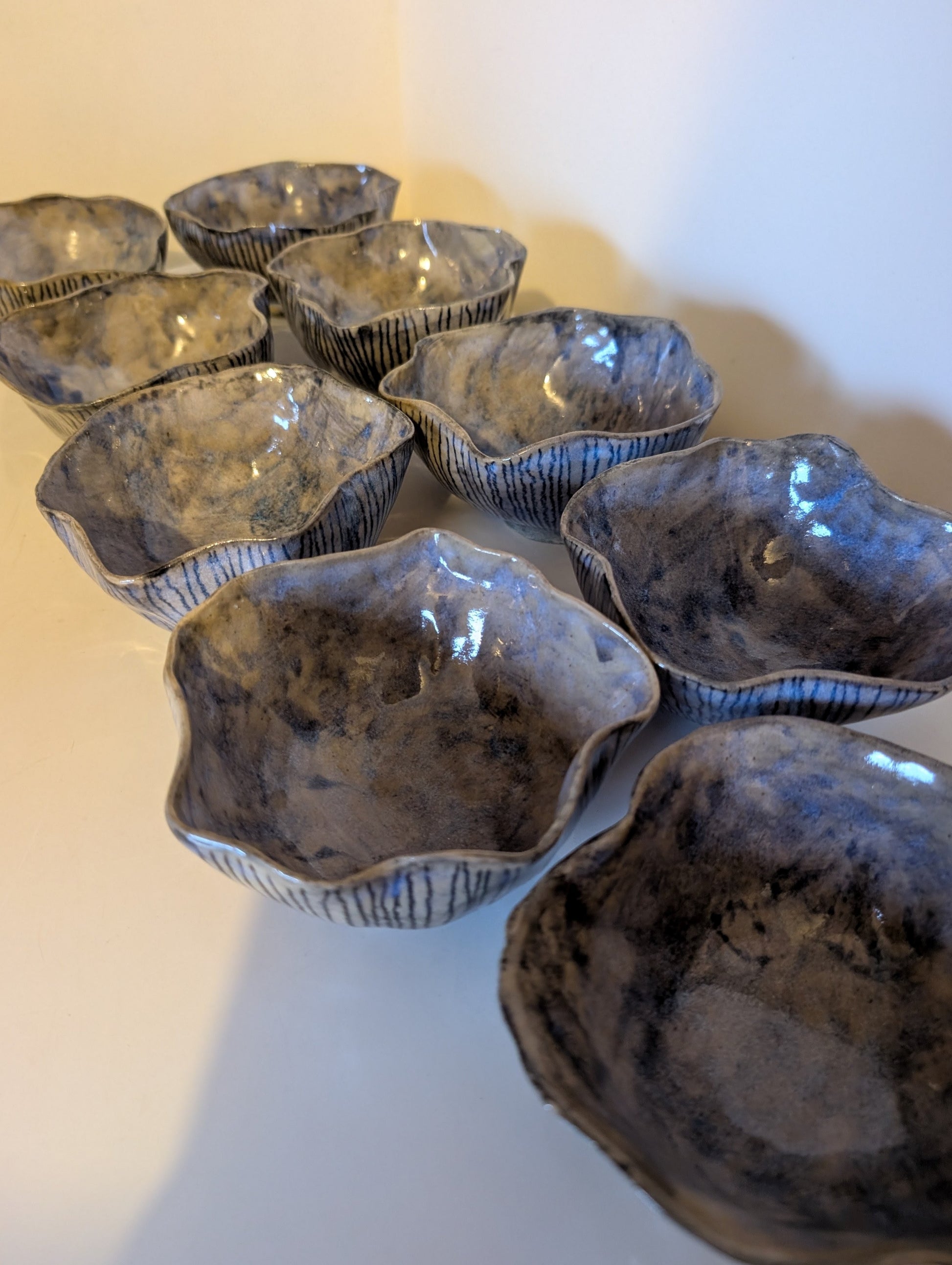 Ø max 12-13 cm / h. 6-7 cm. Environ, car ces coupelles sont faites à la main, du coup elles sont toutes un peu différentes les unes des autres, donc toutes uniques.