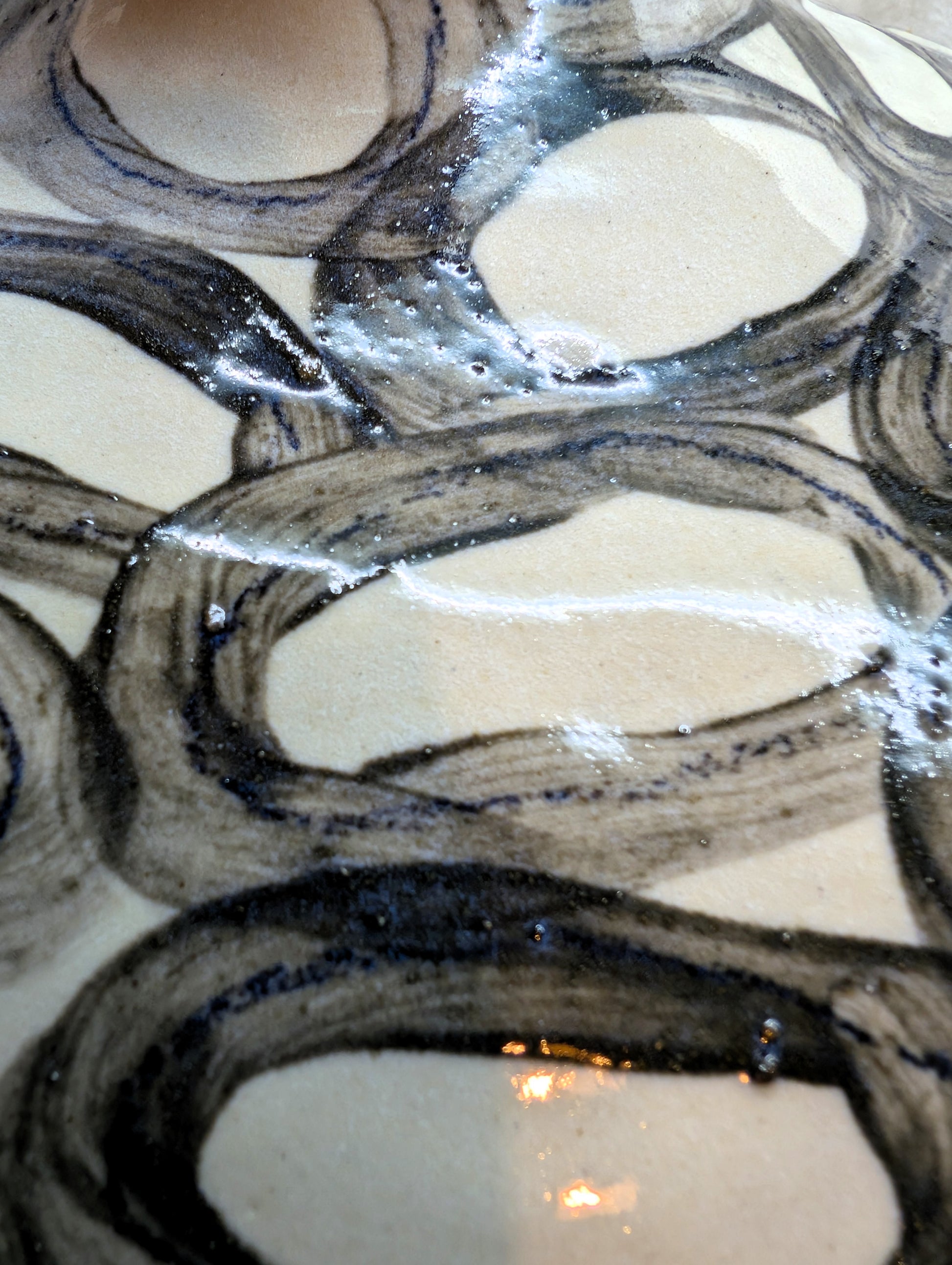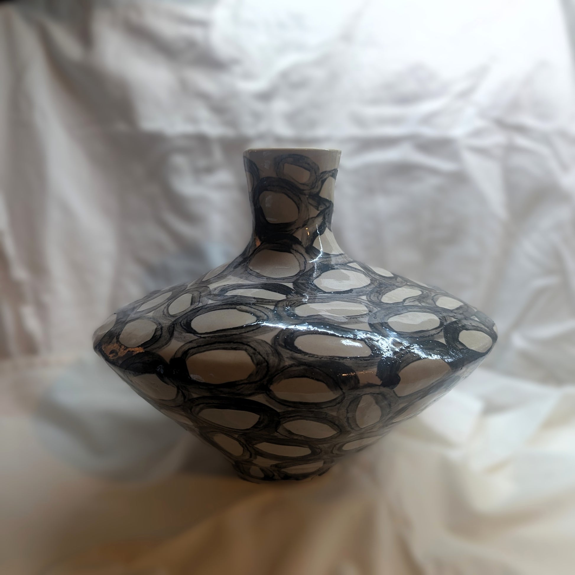 Jarrón torneado en gres Saint Amand, decoración engobe y esmalte transparente brillante.